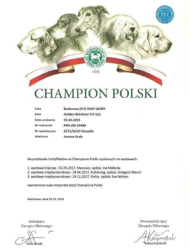 Badenova Holy Glory – klasa otwarta, ex. 1/6, CAC, Champion Polski