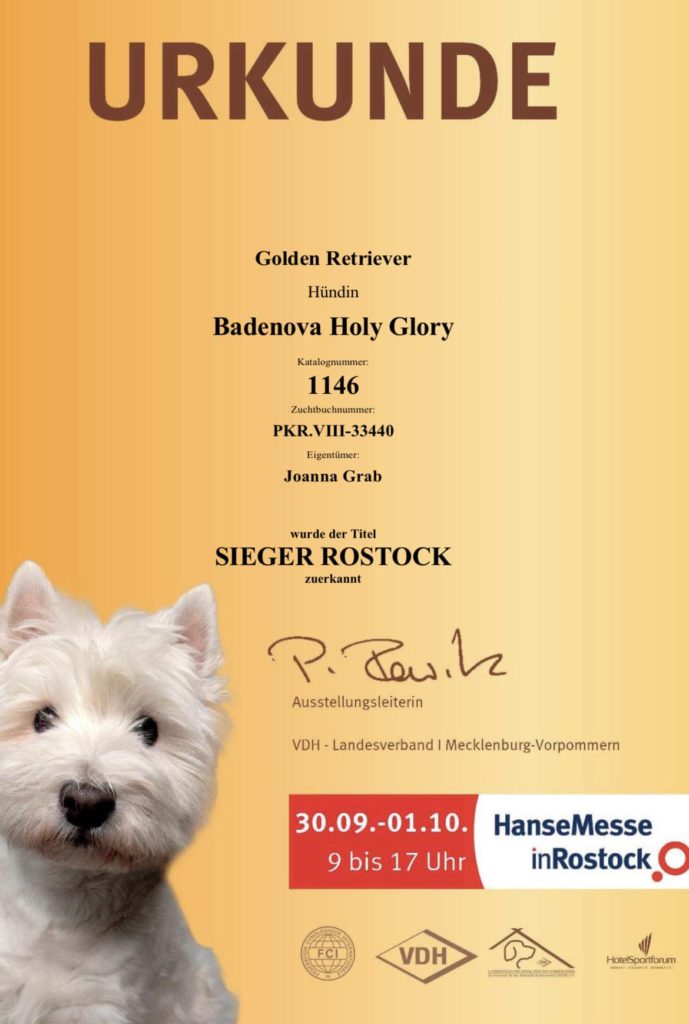 Nie zwalniamy tempa! Tym razem pokazaliśmy się w Niemczech na Międzynarodowej Wystawie Psów w Rostocku. Persja zwyciężyła w klasie championów, po czym została wybrana najlepszą dorosłą suką w rasie, otrzymała tytuł Sieger Rostock 2023 i finalnie wygrała całą stawkę wygrywając Zwycięstwo Rasy!!!!