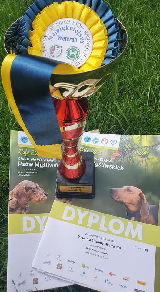 12 września 2021 r. nasza cudowna Lila miała swój debiut w klasie weteranów podczas Myśliwskiej Wystawy Psów Rasowych w Gorzowie Wielkopolskim. Aż trudno uwierzyć, że to już weteranka. Moja pierwsza goldenia pannica o złotym sercu 9 lipca skończyła 8 lat. Ostatni swój wystawowy występ zaliczyła w 2018 roku, ale ten mały rozumek nic a nic […]