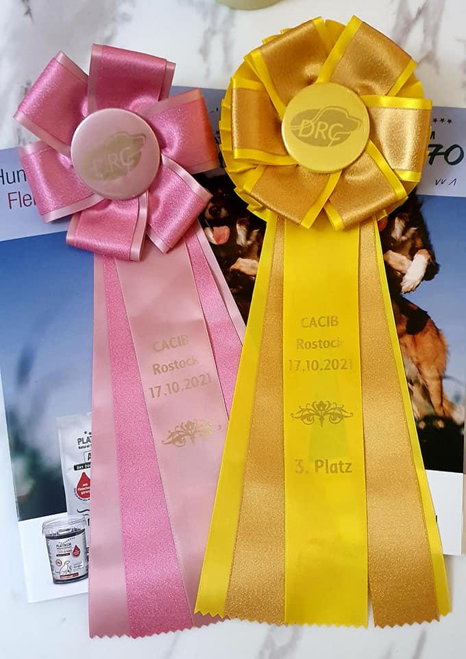 Niedzielne przedpołudnie poświęciliśmy na pokazywaniu się podczas Międzynarodowej Wystawy Psów Rasowych w Rostocku. Galusia w klasie szczeniąt wybiegała sobie ocenę wybitnie obiecującą i 1 lokatę, a jej mamusia Persja w klasie championów zajęła 3 miejsce na 6 suczek. Obie moje dziewczyneczki jak zwykle pokazały się perfekcyjnie <3 To dla mnie kolejny powód do dumy!